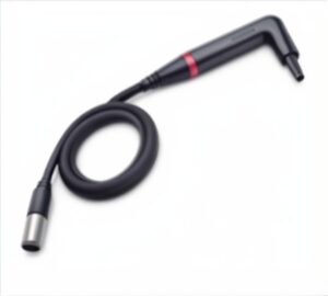 Емкостная изогнутая рукоятка создана для работы в емкостном режиме с использованием металлического активного электрода, покрытого изолирующим материалом, который после наложения проводникового крема прикладывается непосредственно на область, которая нуждается в лечении.